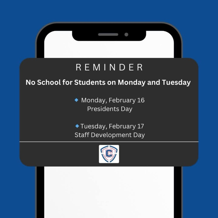 REMINDER: Cleveland City Schools will be closed Monday, February 16 in observance of Presidents Day. District and school offices will also be closed.
