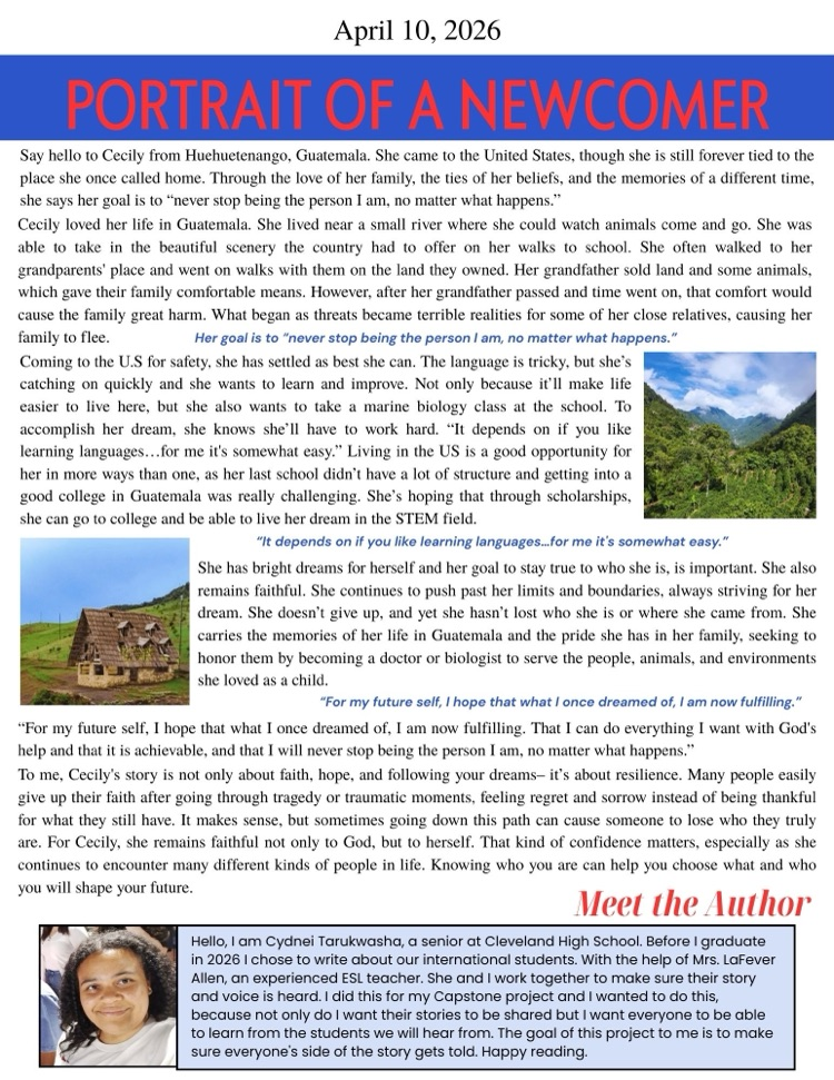 Please join us in congratulating Lila Dunn on being selected as the 2026 Cleveland High School Girls State Representative. Lila was chosen for this honor by our staff and teachers in recognition of her leadership and character.